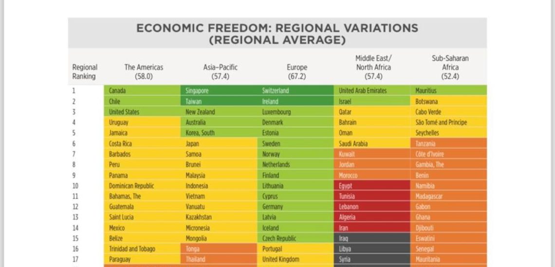 El Índice de Libertad Económica es una serie de 12 indicadores creados por la Fundación Heritage y The Wall Street Journal. Su objetivo declarado es medir el grado de aplicacion del concepto ideológico de libertad económica aplicado al campo de la economía de mercado, proveniente del Liberalismo económico, en cada país del mundo. Esta medición toma en cuenta las siguientes variables: